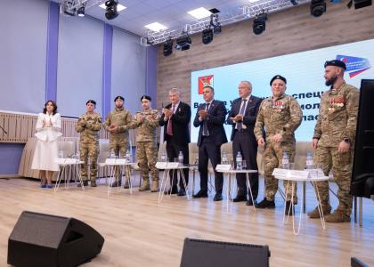 В рамках встречи бойцы легендарной бригады РШБ «Ветераны» — Герой России Сергей Лоёк, командир РШО Дмитрий Хабалов и участники СВО Дмитрий Люлько, Шамхал Мугадов, Никита Кашаев и Владимир Петухов в формате живого диалога рассказали ребятам о своей работе и ежедневных задачах. Также была представлена выставка фотографий, собранная из личного архива добровольческой бригады «Ветераны».