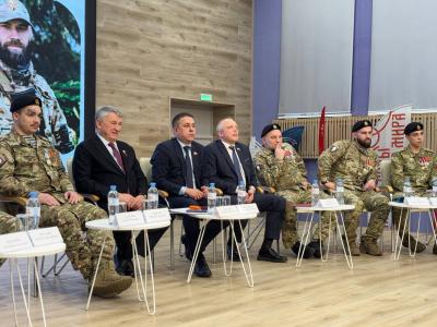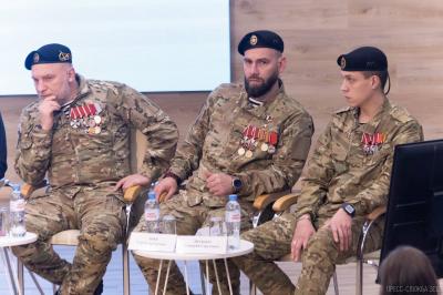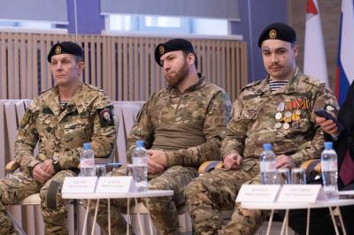 В рамках встречи бойцы легендарной бригады РШБ «Ветераны» — Герой России Сергей Лоёк, командир РШО Дмитрий Хабалов и участники СВО Дмитрий Люлько, Шамхал Мугадов, Никита Кашаев и Владимир Петухов в формате живого диалога рассказали ребятам о своей работе и ежедневных задачах. Также была представлена выставка фотографий, собранная из личного архива добровольческой бригады «Ветераны».