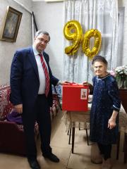 90-летний Юбилей отпраздновала Лина Георгиевна Трундаева, жительница Ступино, представительница поколения «Детей войны», активная участница волонтерского движения, оказывающего помощь нашим воинам-героям на СВО. По поручению заместителя Председателя Мособлдумы - руководителя фракции КПРФ Александра Наумова с юбилеем ее поздравил помощник депутата регионального парламента Рустам Волков и вручил Лине Георгиевне подарок от Московской областной Думы.