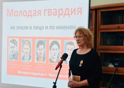 В Воронежской областной библиотеке им. И.С. Никитина прошла презентация нового издания бессмертного романа Александра Фадеева «Молодая гвардия» о подвиге комсомольцев, входивших в состав одноимённой подпольной молодёжной организации в г. Краснодоне, участники которой сражались с немецко-фашистскими оккупантами в годы Великой Отечественной войны и почти все погибли от рук гитлеровских палачей. Издание было осуществлено Воронежским областным комитетом КПРФ при поддержке центрального комитета партии, депутата Госдумы от Воронежской области С.А. Гаврилова, депутатов фракции КПРФ в Воронежской областной Думе. Также в ходе мероприятия была представлена книга стихов воронежской поэтессы и педагога Елены Смолицкой «Горела молодость», тоже посвящённая подвигу «Молодой гвардии».