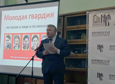 В Воронежской областной библиотеке им. И.С. Никитина прошла презентация нового издания бессмертного романа Александра Фадеева «Молодая гвардия» о подвиге комсомольцев, входивших в состав одноимённой подпольной молодёжной организации в г. Краснодоне, участники которой сражались с немецко-фашистскими оккупантами в годы Великой Отечественной войны и почти все погибли от рук гитлеровских палачей. Издание было осуществлено Воронежским областным комитетом КПРФ при поддержке центрального комитета партии, депутата Госдумы от Воронежской области С.А. Гаврилова, депутатов фракции КПРФ в Воронежской областной Думе. Также в ходе мероприятия была представлена книга стихов воронежской поэтессы и педагога Елены Смолицкой «Горела молодость», тоже посвящённая подвигу «Молодой гвардии».
