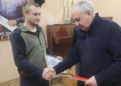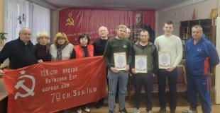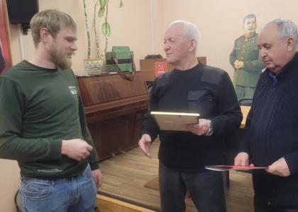 Руководитель фракции КПРФ в Смоленской областной Думе В. Кузнецов и председатель КРК областной парторганизации А. Степченков вручили Благодарности командования бригады и Почетные грамоты ЦК КПРФ Антону Кузенкову, Геннадию Михайлову, Андрею Горбунову и поблагодарили ребят за сотрудничество.