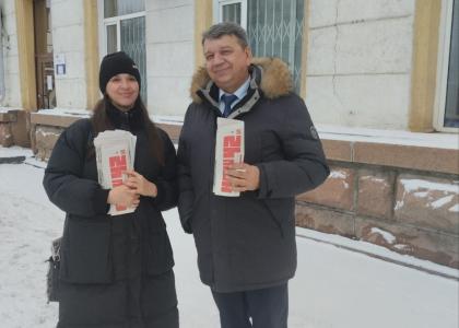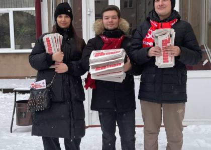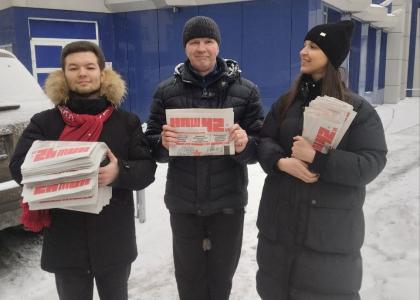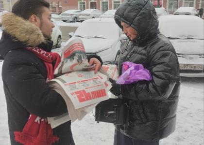 Зимний день в Кемерово. На улицах города, среди спешащих по своим делам прохожих, можно заметить небольшие группы людей с красными шарфами. Это активисты Кемеровского городского отделения КПРФ, которые активно раздают жителям столицы Кузбасса информационный бюллетень «Наш 42-й!».