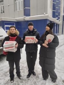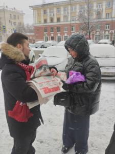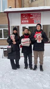 Зимний день в Кемерово. На улицах города, среди спешащих по своим делам прохожих, можно заметить небольшие группы людей с красными шарфами. Это активисты Кемеровского городского отделения КПРФ, которые активно раздают жителям столицы Кузбасса информационный бюллетень «Наш 42-й!».