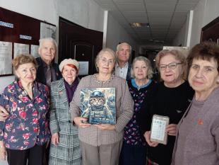 Были переданы письма бойцам от детей войны и подарок командованию батальона - выполненная алмазной мозаикой картина «Котик-боец», сделанная членом совета Н.Н. Беляевой.