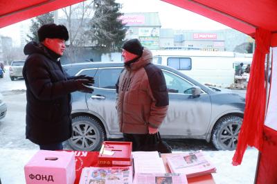 Андрей Алехин регулярно в ходе «региональных недель» участвует в работе красных палаток. Вот и сегодня, несмотря на то, что в Омске наконец-то начались морозы, он вышел в пикет вместе с нашими агитаторами.