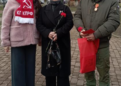 На акции памятная медаль ЦК КПРФ «80 лет Великой Победы» вручена коммунисту Калужской городской организации КПРФ, бойцу СВО, добровольцем пошедшим на борьбу с коричневой чумой Андрею Анатольевичу, позывной «Афган». Участники мероприятия пожелали своему товарищу вернуться домой с Победой.