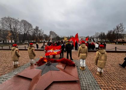 После слов Татьяны Евдокимовны состоялось возложение цветов к Вечному огню на площади Славы.
