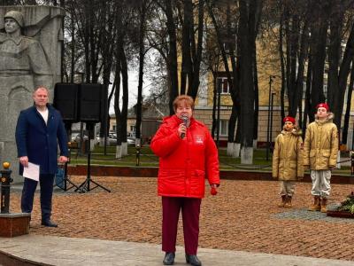 Памятное мероприятие началось с выступления Рохлиной Марии Михайловны - ветерана Великой Отечественной войны, которая отметила важность и ценность этого мероприятия: «Я призывая вас: помните через года, через века помните, о тех, кто уже не придет никогда, помните, что было в те суровые годы, и готовьтесь к тому, что будет. Вперед к Победе! Победе нашей могучей, любимой и непобедимой Родины! Слава великому, советскому солдату. Вперед к Победе! Победа будет за нами!».