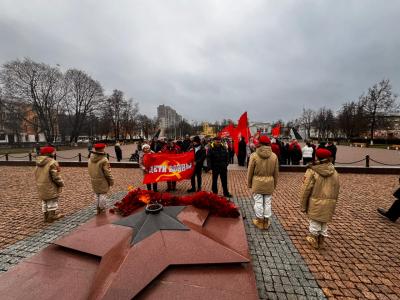 После слов Татьяны Евдокимовны состоялось возложение цветов к Вечному огню на площади Славы.
