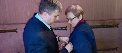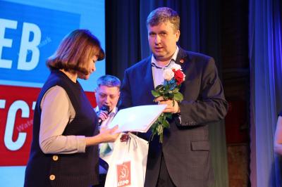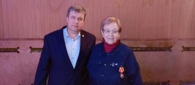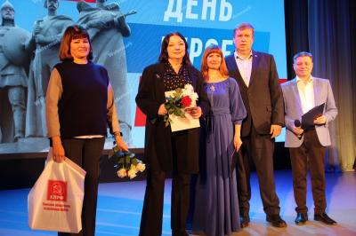 Первый секретарь Томского обкома КПРФ, заместитель председателя Думы г. Томска А.Г. Петров вручил ветеранам культуры Томского района благодарственные письма от депутатских фракций коммунистов и обкома партии. А также памятной медалью ЦК КПРФ в ознаменование 80-летия Победы советского народа в Великой Отечественной войне была отмечена В.Н. Ким, Заслуженный работник культуры РФ, инициатор и вдохновитель многих культурным мероприятий, в том числе и Межрегионального патриотического фестиваля военно-исторических маршрутов «Россия начиналась не с меча». Удостоверение о награждении подписано Председателем ЦК КПРФ Г.А. Зюгановым. Андрей Петров поблагодарил Валентину Николаевну Ким за самоотверженный труд и многочисленные интересные проекты.