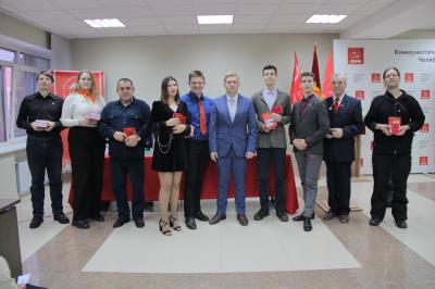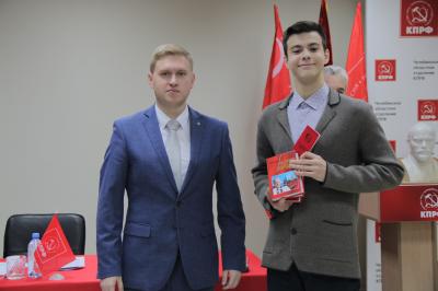 Перед началом заседания первый секретарь Челябинского обкома КПРФ Денис Курочкин торжественно вручил членские билеты товарищам, вновь вступившим в КПРФ и в Ленинский Комсомол. Партийные билеты получили Софья Гильзитинова и Константин Крупинин (Курчатовское отделение КПРФ г. Челябинска), комсомольские – Ольга Горбунова, Дмитрий Комаров, Кирилл Лахно, Алексей Рябинин и Никита Ртищев.