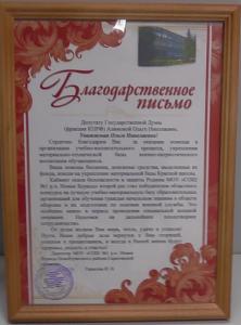 В ходе мероприятия О.Н. Алимовой и депутату фракции КПРФ Саратовской облдумы Д.А. Буланову вручили благодарственные письма от учащихся и педагогического коллектива за всестороннюю поддержку МОУ СОШ №1 из Новых-Бурасс в деле патриотического воспитания молодёжи.