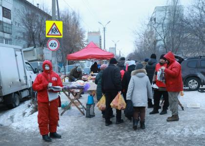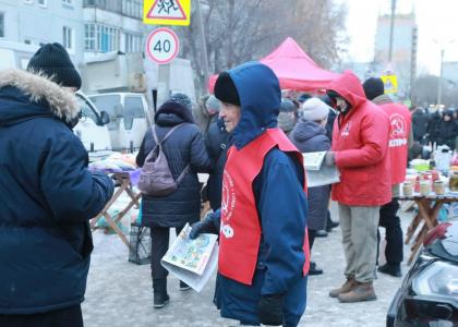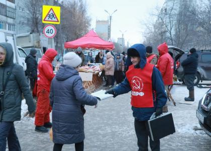 Очередной пикет прошёл на выходных на Левобережье Омска. 12 микрорайон, рынок, всегда много жителей. Уже сегодня пришло много новых наших товарищей в красных накидках. Снегопад не помешал активистам КПРФ.