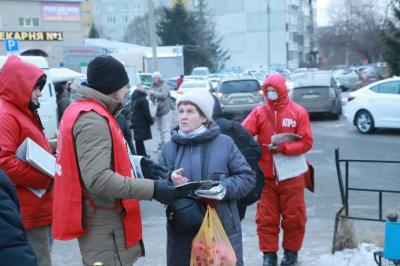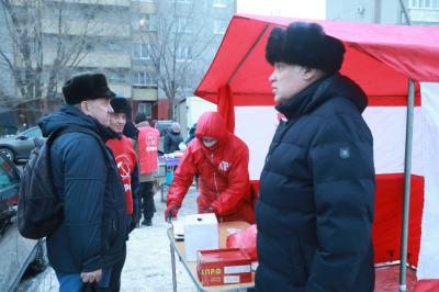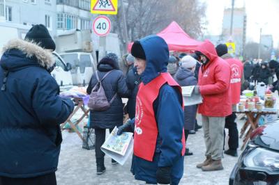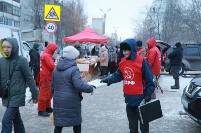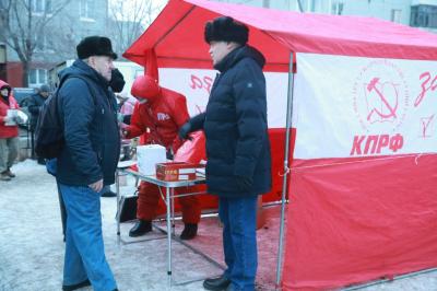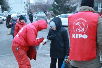 Очередной пикет прошёл на выходных на Левобережье Омска. 12 микрорайон, рынок, всегда много жителей. Уже сегодня пришло много новых наших товарищей в красных накидках. Снегопад не помешал активистам КПРФ.