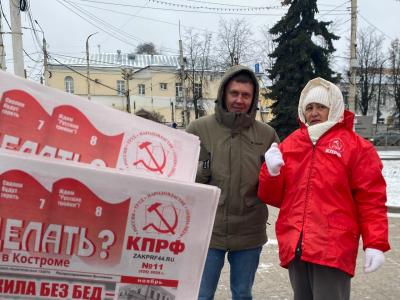 Сегодня костромские коммунисты и комсомольцы, несмотря на погоду с сильным ветром, провели агитационную работу по распространению самой информативной газеты нашего региона «Что делать? В Костроме» в районе Универмага, а также провели очередной опрос граждан в рамках шагающего по стране народного референдума.