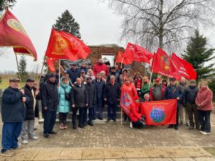 В этот памятный день члены горкома КПРФ торжественно прошлись по центру города, поклонились и возложили венок и цветы к братской могиле воинов, защищавших Солнечногорск.