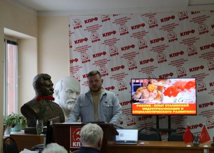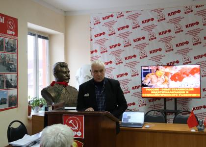 Яркой и содержательной была презентация секретаря Саранского горкома КПРФ по идеологической работе Дениса Аладышева, посвященная биографии И.В. Сталина. Через призму фактов и документов он раскрыл путь становления революционера-подпольщика, теоретика и практика социализма, Верховного Главнокомандующего, сумевшего сплотить народ для Победы.