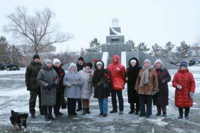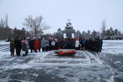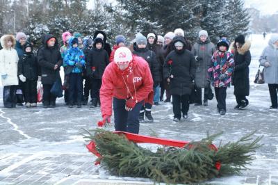 У памятника собралось около пятидесяти человек. Пришло и два класса соседней школы № 97: именно там, когда морозы были особо сильными, собирались ветераны, живущие в микрорайоне, и школьники.