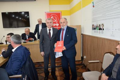 Перед началом заседания первый секретарь Дагестанского рескома КПРФ Самир Абдулхаликов в торжественной обстановке вручил партийные билеты товарищам, вновь вступившим в КПРФ.