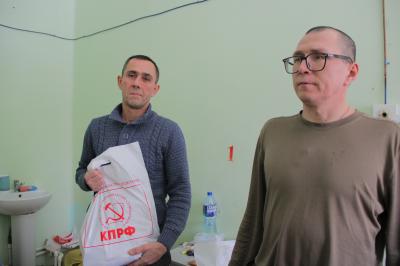 Бойцы благодарили делегацию за внимание и подарки. Даже в коротких диалогах с ними, несмотря на их ранения разной тяжести, было видно, что все они настроены оптимистично, поддерживают программу КПРФ и некоторые готовы к вступлению в ее ряды и в члены Союза советских офицеров.