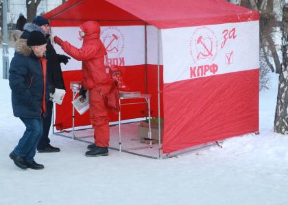 Надо сказать, что представители "Нового города" единоросса Кокорина оказались, видимо, мерзлявыми, и сегодня не стали проводить свою акцию. А напрасно. Потому как перед новым годом много народу идёт закупаться на рынок. Охотно местные жители заходят в Красную палатку поставить подписи Народного Референдума, каждый получает спецвыпуск газеты "Правда" и новогодний "Красный путь".