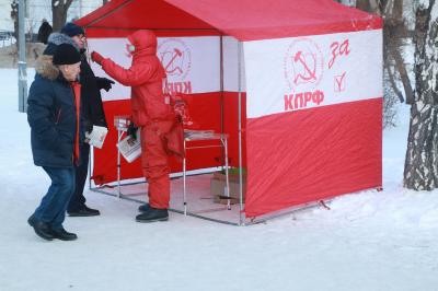 Надо сказать, что представители "Нового города" единоросса Кокорина оказались, видимо, мерзлявыми, и сегодня не стали проводить свою акцию. А напрасно. Потому как перед новым годом много народу идёт закупаться на рынок. Охотно местные жители заходят в Красную палатку поставить подписи Народного Референдума, каждый получает спецвыпуск газеты "Правда" и новогодний "Красный путь".