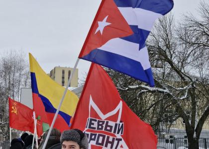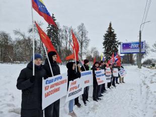 Активисты КПРФ, Ленинского комсомола, Левого Фронта и ВЖС «Надежда России» провели совместную акцию против империализма и агрессивной политики США в отношении Венесуэлы.