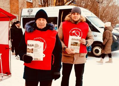 Так, одна из красных палаток была установлена в Кормиловке, на конечной остановке маршруток в Омск. Место людное, к нашим товарищам подходили участвовать в голосовании Народного Референдума, получали спецвыпуск газеты "Правда", жаловались на то, что крупный район, притом не далёкий от областного центра, фактически без хозяина (напомним, бывший глава района, единоросс, активно продвигавший, кстати, муниципальную реформу в районе, утратил доверие).