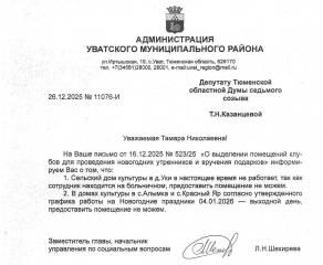 Администрация Уватского района отказала лидеру коммунистов Тюменской области Тамаре Казанцевой в предоставлении помещений клубов для проведения детских утренников в новогодние каникулы.