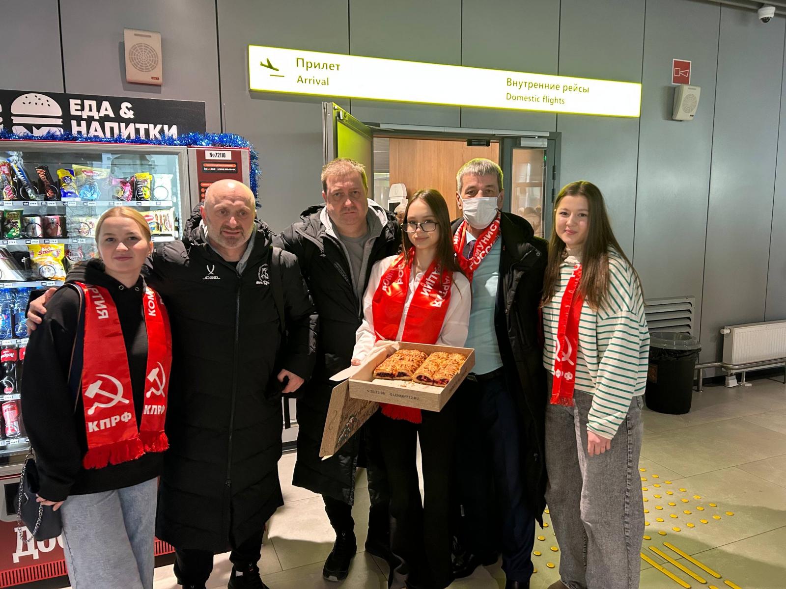 В тюменском аэропорту «Рощино» в четверг было необычайно оживлённо и по-семейному тепло. Местные любители футзала и спортсмены устроили яркую и душевную встречу футболистам московского мини-футбольного клуба КПРФ, прибывшим на матчи чемпионата России.