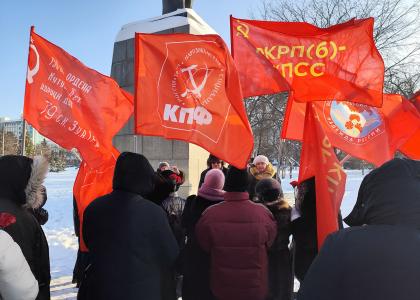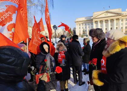 В день памяти Владимира Ильича Ленина, несмотря на зимнюю стужу, на Центральной площади Тюмени собрались те, в чьих сердцах живы идеалы социальной справедливости. Морозный воздух не смог остудить тепла искренней памяти и убеждённости, с которыми активисты возложили цветы к памятнику вождю мирового пролетариата. Мероприятие было организовано Тюменским обкомом КПРФ.