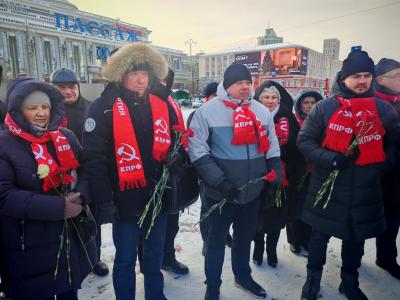 Акция завершилась торжественным возложением цветов к подножию памятника. Алые гвоздики на граните — это символ. Символ непрерывной связи поколений, памяти о великих свершениях и решимости продолжать борьбу за общество, где нет места эксплуатации и социальной несправедливости.