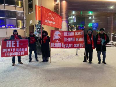 Коммунисты провели памятный пикет и возложили цветы к бюсту В.И. Ленина, который был установлен у помещения горкома КПРФ к 155-ой годовщине вождя по инициативе новоуренгойских коммунистов.