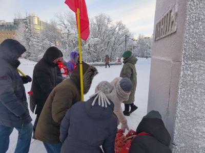 Вот и сегодня, несмотря на сильный мороз, в Салехарде прошел пикет памяти В.И. Ленина. Участники пикета возложили алые гвоздики к памятнику вождю мирового пролетариата.