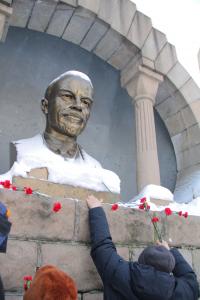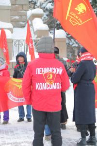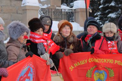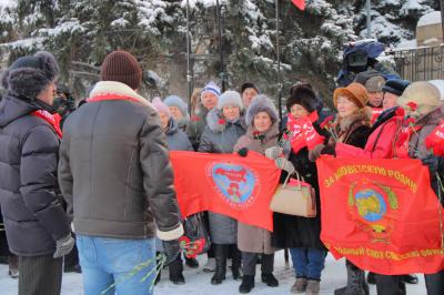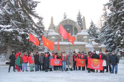 У челябинского мавзолея Владимиру Ильичу с бронзовым бюстом, несмотря на морозную погоду и рабочий день, собралось более 40 коммунистов и членов Союза Красных сил области.