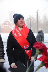 Перед участниками памятной акции выступили первый секретарь Челябинского обкома КПРФ Денис Курочкин, секретарь обкома партии по связям с общественными организациями Николай Шеремет, член Ленинского комсомола Софья Гильзитинова и первый секретарь Калининского райкома КПРФ Денис Андреев.