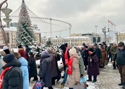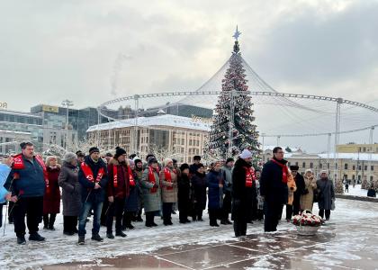 Собравшиеся почтили память вождя минутой молчания и возложили цветы к памятнику В.И. Ленину.