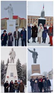 Собравшиеся почтили память вождя минутой молчания и возложили цветы к памятнику В.И. Ленину.