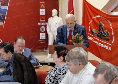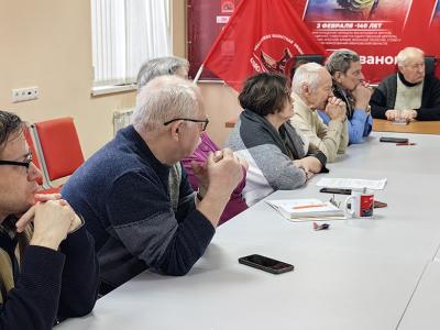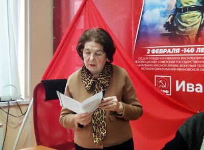 - преподаватель школы Марксистко-ленинского образования, кандидат философских наук, профессор Г.Н. Шумакова, напомнила участникам собрания о высказывании В.И. Ленина, в его работе «Кризис власти» в мае 1917 года: «Необходима перемена всей политики Советов, отказ от доверия к капиталистам и переход всей власти к Советам рабочих и солдатских депутатов. Перемена лиц ни к чему не приведет, надо переменить политику. Надо, чтобы у власти стал другой класс. Правительству рабочих и солдат поверит весь мир, ибо всякий понимает, что рабочий и беднейший крестьянин никого грабить не хочет. Только это может ускорить конец войны, только это может облегчить нам пережить экономическую разруху. Вся власть Советам рабочих и солдатских депутатов! Никакого доверия правительству капиталистов! Каждый «инцидент», каждый день, каждый час будет подтверждать правильность этого пароля». Продолжая, Галина Николаевна добавила: «Власть должна перейти в руки Совета рабочих депутатов, избираемых по производственному принципу». В завершение своего выступления она рассказала о Научно-практической конференции, прошедшей в 2025 году в пос. Ульяновка Ленинградской области в доме-музее Ульяновых-Елизаровых, на тему: «За Советами будущее», к 120-летию Первого общегородского Иваново-Вознесенского Совета рабочих депутатов и роли рабочих Советов в пролетарском движении. Также Галина Николаевна сделала объявление, что с февраля месяца каждое второе воскресенье, в Ивановском обкоме партии состоятся лекции по теме: «Современный марксизм», читает лекции доктор философских наук, профессор А.С. Казенов.