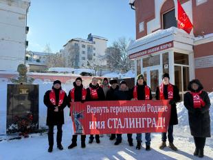 Активисты КПРФ и Ленинского комсомола провели памятное мероприятие, приуроченное к 83-й годовщине Победы советских войск в Сталинградской битве — одному из ключевых и переломных событий Великой Отечественной войны.