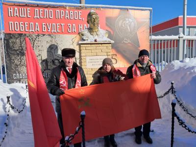 В память о великом подвиге бойцов Красной Армии, их военачальников под Сталинградом секретари Тамбовского обкома КПРФ А.И. Жидков, Е.В. Козодаева, Л.А. Попова и первый секретарь Пичаевского РК КПРФ В.Р. Беляев возложили к бюсту Верховного Главнокомандующего И.В. Сталина красные гвоздики.