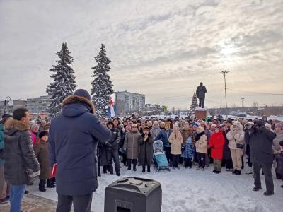 7 февраля в Кольчугино прошла очередная акция за сохранение родильного отделения районной больницы. Предыдущий митинг состоялся в январе и, несмотря на мороз, собрал порядка 200 человек. Второй митинг кольчугинские власти запретили проводить под предлогом демонтажа новогодней елки и украшений. В итоге елку начали вяло разбирать только к концу акции, а к прочим декорациям даже не приступили.