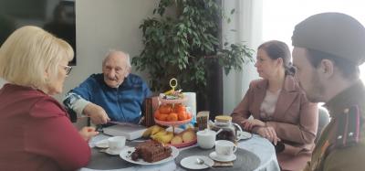 Первый секретарь Новгородского обкома КПРФ Ольга Ефимова, депутат Думы Новгородского муниципального округа (КПРФ) Ольга Батаева, секретарь по молодёжной политике Новгородского обкома Андрей Михеев сегодня, 13 февраля, тепло поздравили со 100-летним юбилеем ветерана Великой Отечественной войны Василия Степановича Крестьянинова.