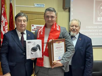 В завершении собрания состоялось награждение дипломами и ценными подарками победителей конкурса на лучшую парторганизацию, отличившихся активистов Компартии и членов общественных организаций-сторонников КПРФ. Ветеранам партии были вручены знаки «Ветеран партии» и ценные подарки.