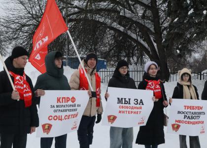 15 февраля в Пензе представители КПРФ и лево-патриотических движений провели акцию против блокировки мессенджеров и ограничений в интернете.