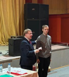 Н. Иванов вручил комсомольский билет Виталию Новикову, вступившему в ряды Ельнинской организации ЛКСМ РФ.