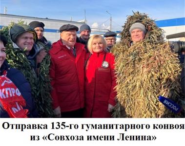 Большая часть гуманитарного груза была собрана коммунистами Подмосковья при непосредственном участии депутатов фракции КПРФ в Московской областной Думе. Кроме того, депутаты, сотрудники аппарата фракции КПРФ и помощники депутатов перечисляли личные денежные средства на помощь нашим воинам и жителям новых регионов.