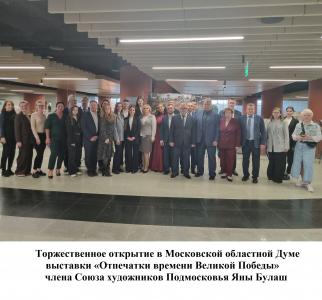 С 19 по 23 мая, по инициативе фракции КПРФ в Московской областной Думе, проходила выставка «Отпечатки времени Великой Победы». На ней были представлены фотоработы члена Союза художников Подмосковья Яны Булаш.