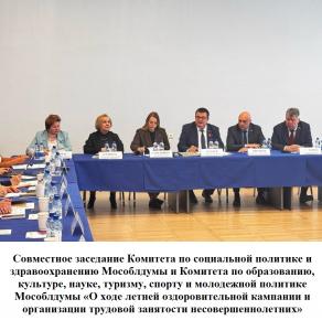 29 апреля состоялось совместное заседание Комитета по социальной политике и здравоохранению Московской областной Думы и Комитета по образованию, культуре, науке, туризму, спорту и молодежной политике Московской областной Думы «О ходе летней оздоровительной кампании и организации трудовой занятости несовершеннолетних», в котором приняли участие депутаты-коммунисты Никитас Т.Е. и Емельянов О.В.